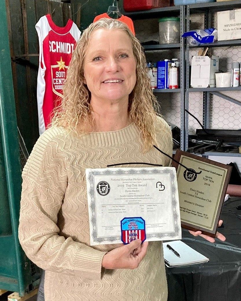 Doris was an active Member of the Bastrop Horseshoe Club and worked really hard with Gene Meyer & Tommy Valenta to keep the Club up & running. She maintained continuous membership through 1999. During this tenure, she won her first State Championship in 1996. After a few years away from the game, Doris rejoined the THPA in 2010 and continues to be an active THPA Member, Advocate for the THPA, and Championship Competitor.